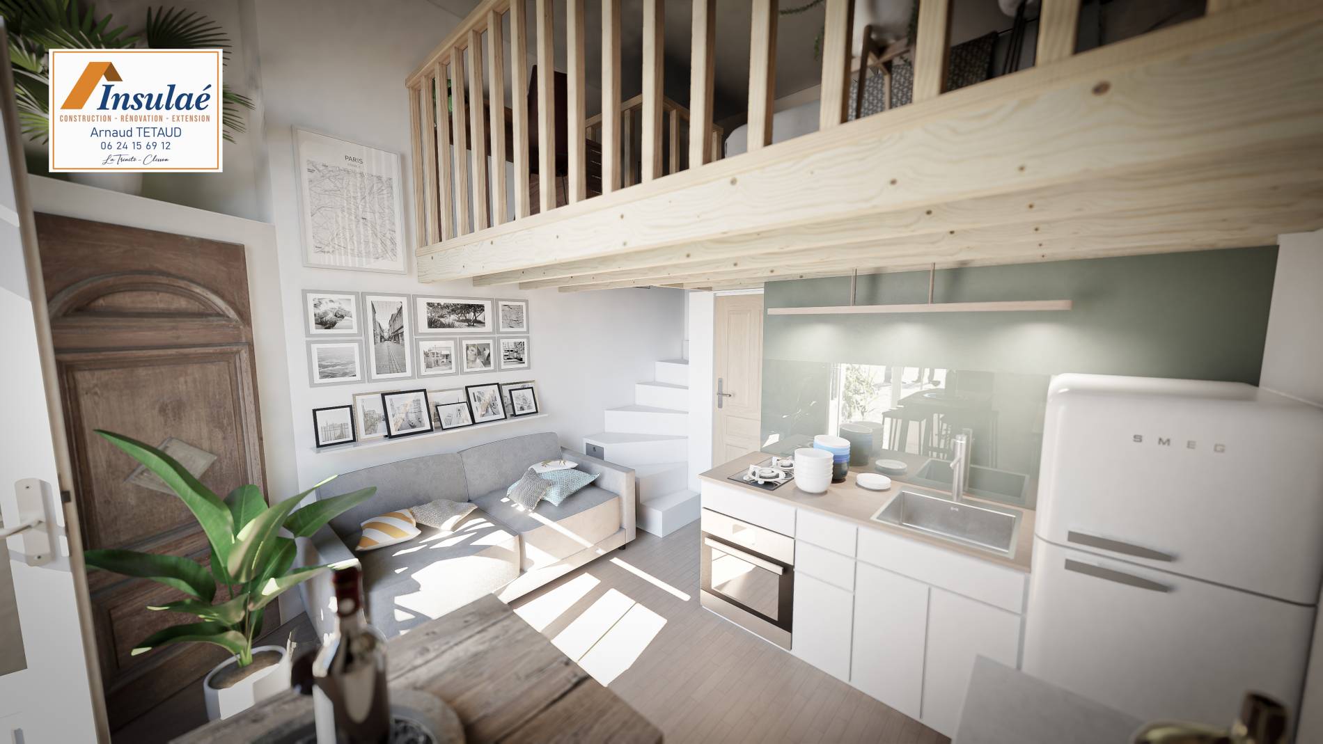Rénovation totale d'un logement de 16 m2 avec mezzanine et salle de bains privative.